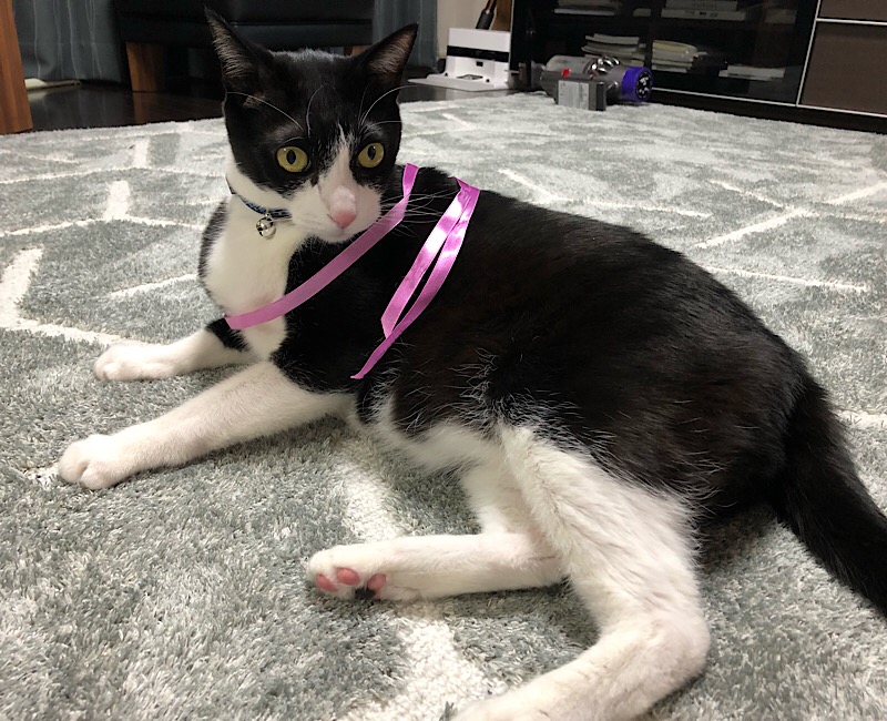 何してくれてんねん!! 服着せたり、貼ったり、巻いたりせんな! 動かれへんのじゃ! でもまあ、 ピンクやから許したる。