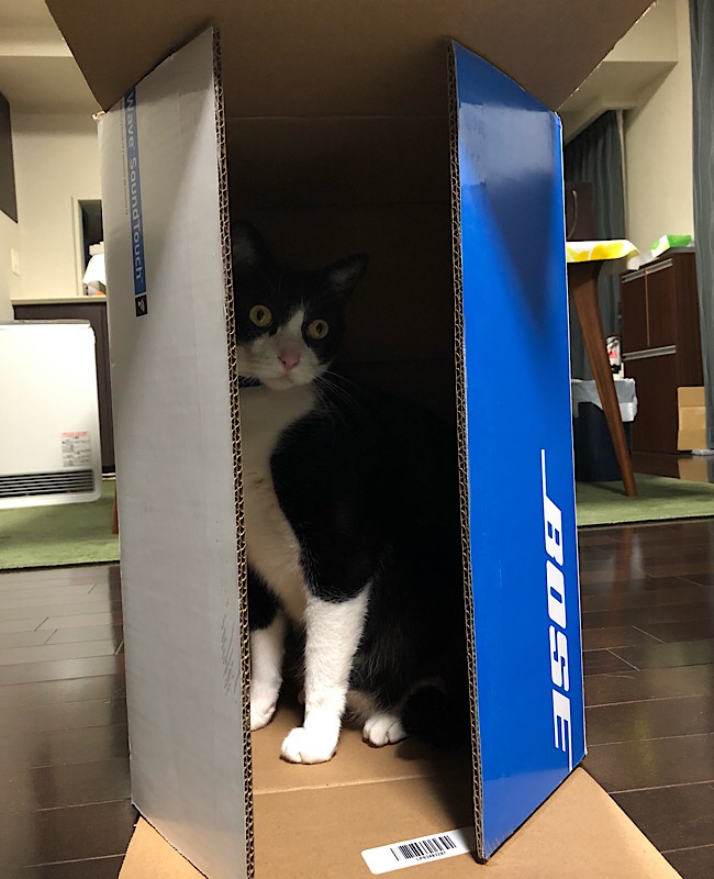 BOSEの箱なら丈夫そう! みそちゃんは縦型のマンションタイプより 横型の平屋タイプの方が好きかな?