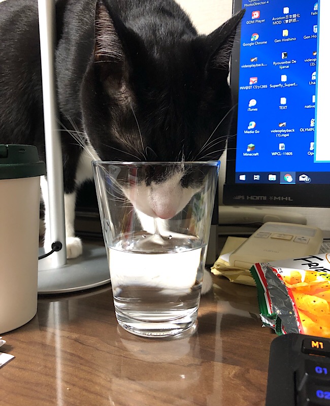 水が足りんがな〰 顏突っ込んで飲むのがカワイイって言われるんやけど 百歩譲っても水足りてへん。