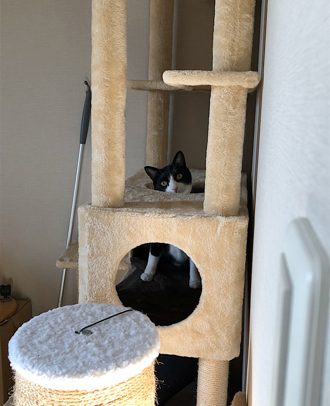 子どもの時は猫タワーも大きく感じたのに ワシ、大きくなったやろ〰、 今年ももっと大きくなるで!!
