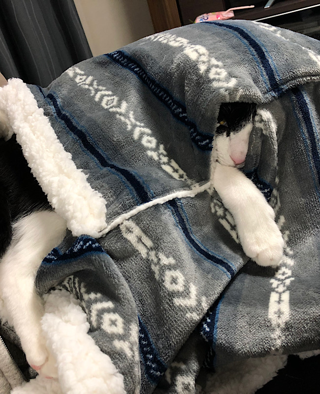 この毛布、どないなっとんの? その内に 糸がほつれて体ごと出入り出来るようになんねんやろうな〰〰 7.5kgやで!!