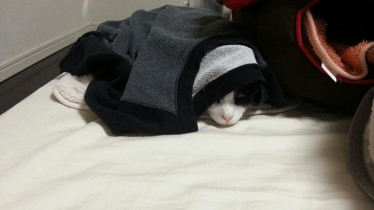 寒そうにしていたのでトレーナー掛けたら寝た。