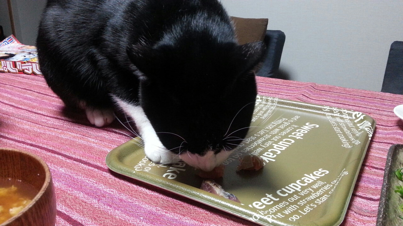 がっつくわりには食べ方が下手でいつまでもペロペロしてます(´ω`)