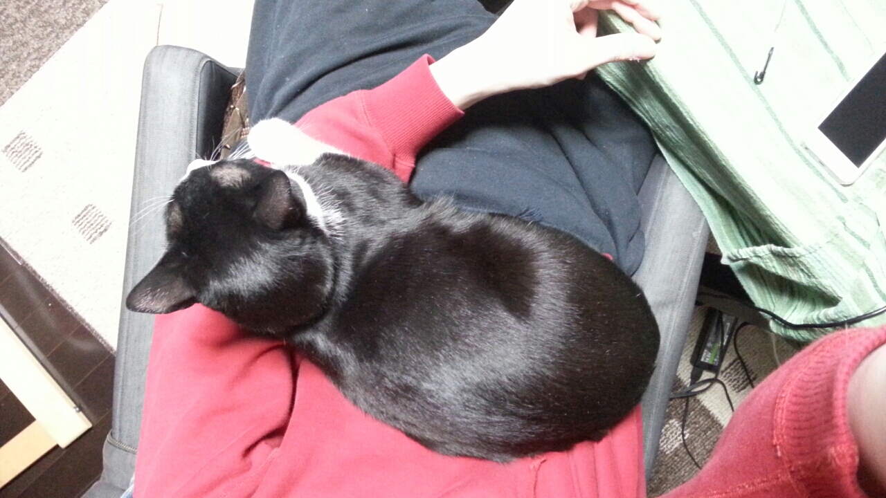 猫の方が体温高いのにね(笑) 脇もお猫様のお役にたてて幸せ♪