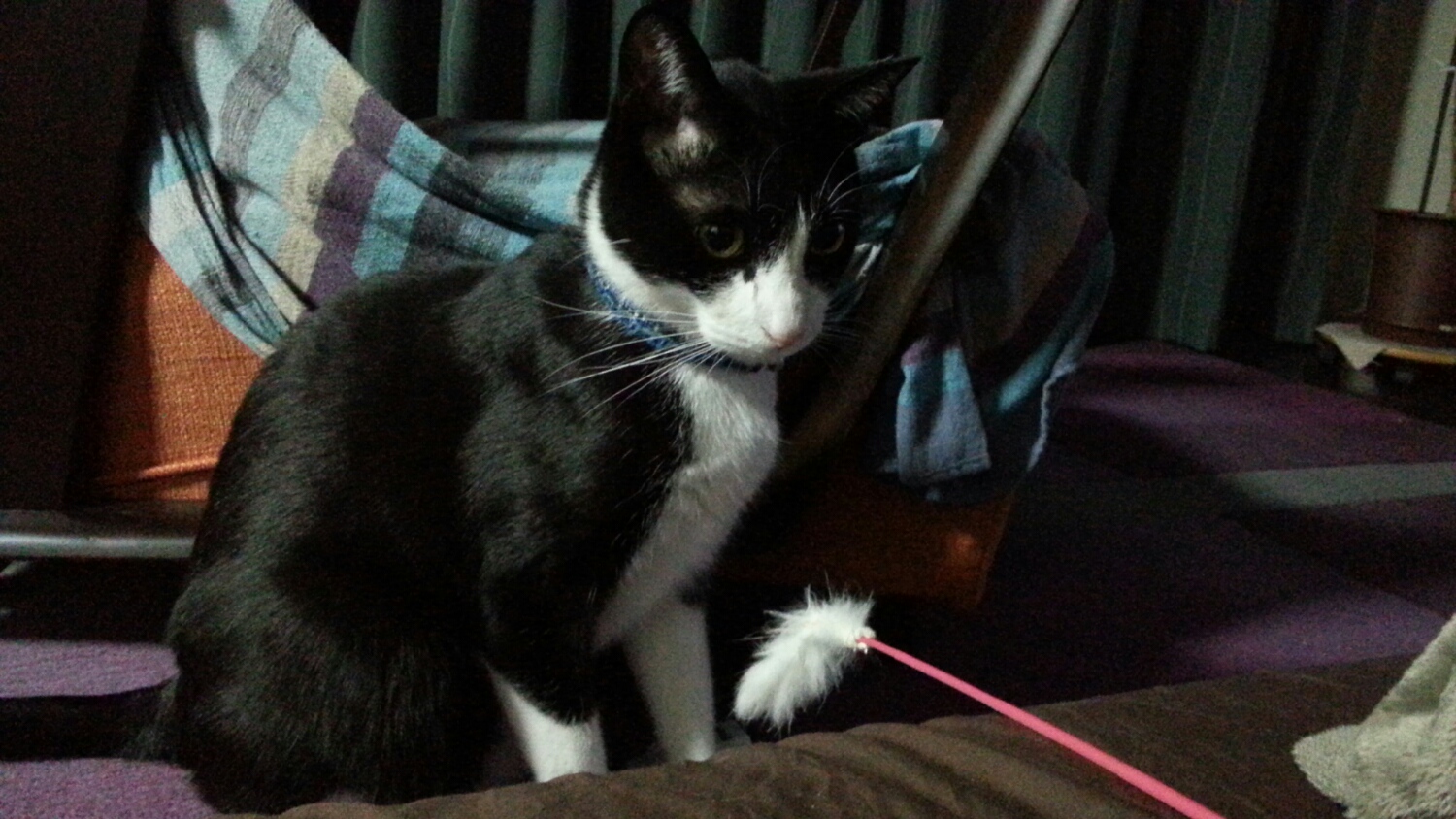 布団にまで猫じゃらし。