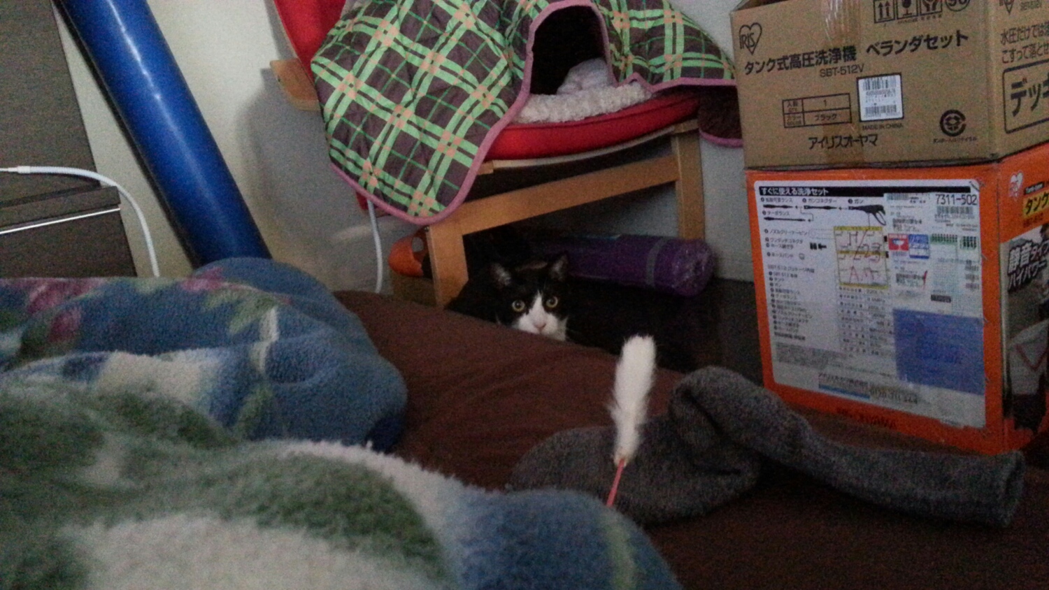 みそちゃんも寝る前に遊ぶのね(*^_^*) うちも同じで~す。 猫って夜は元気ですよね(>_<)