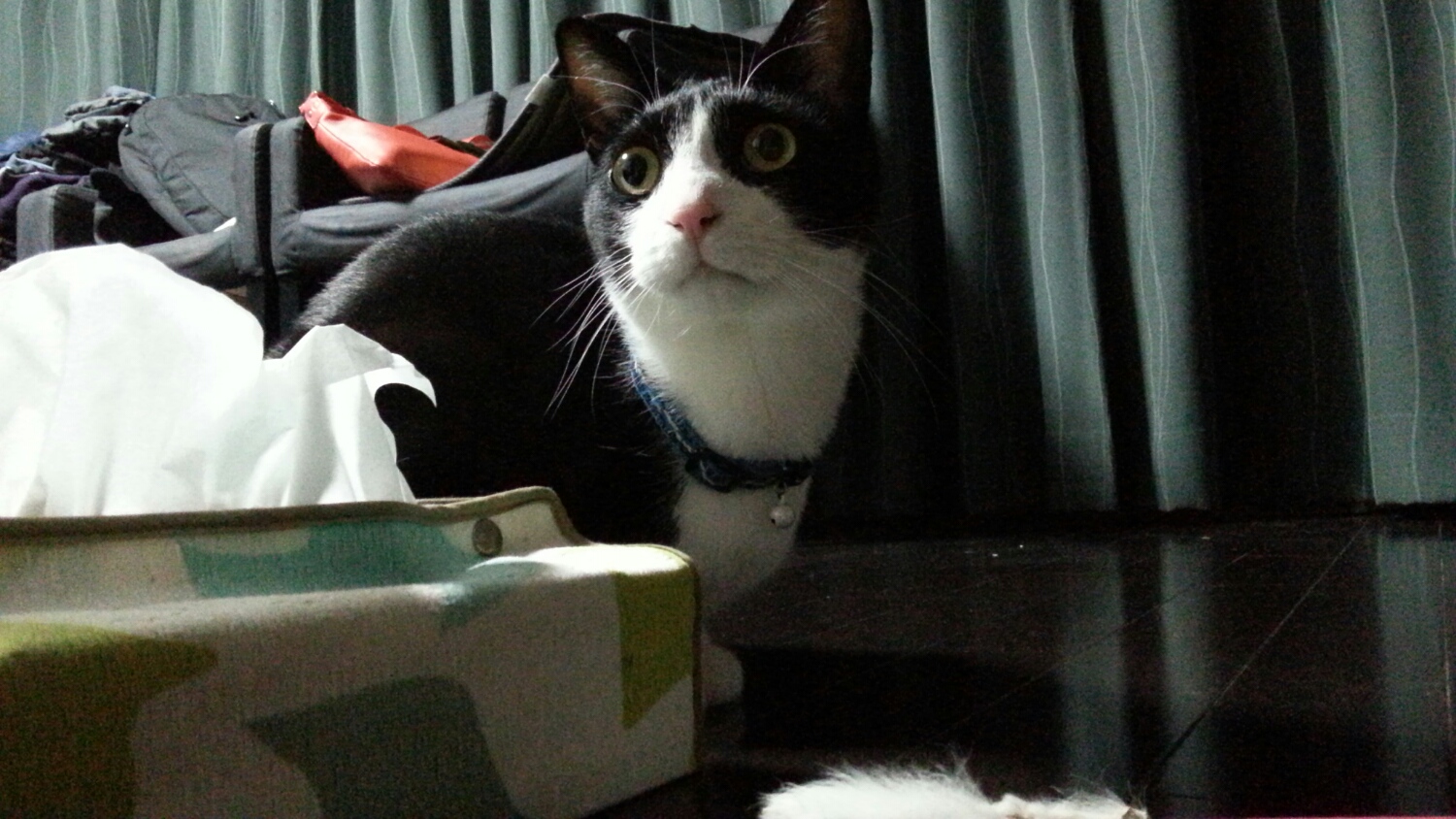 難しいですよねぇ…。 目の周りが黒いと尚更わかりにくいですよね(>_<) ↓ ウチのトップ画像の猫に 蝶ネクタイしたことがあるんですけど タキシードにはとっても似合いますよね~♪