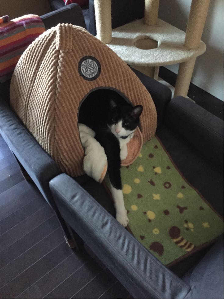 みそちゃんのために 椅子をふたつ向かい合わせてるのかな? 立派なベッドですね~(*^_^*)