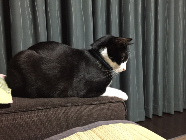 ソファーの肘かけですか? 狭い所好きですよね~。 みそちゃんつやつや~! 毛並みがホントいいですね~~~(●^o^●)