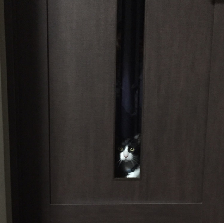 夜だと黒目がまん丸で可愛いですよね♪そーなんです、扉は向こう側に開くタイプなので、あちらにいる時はひたすら待っています♪(´ε` )