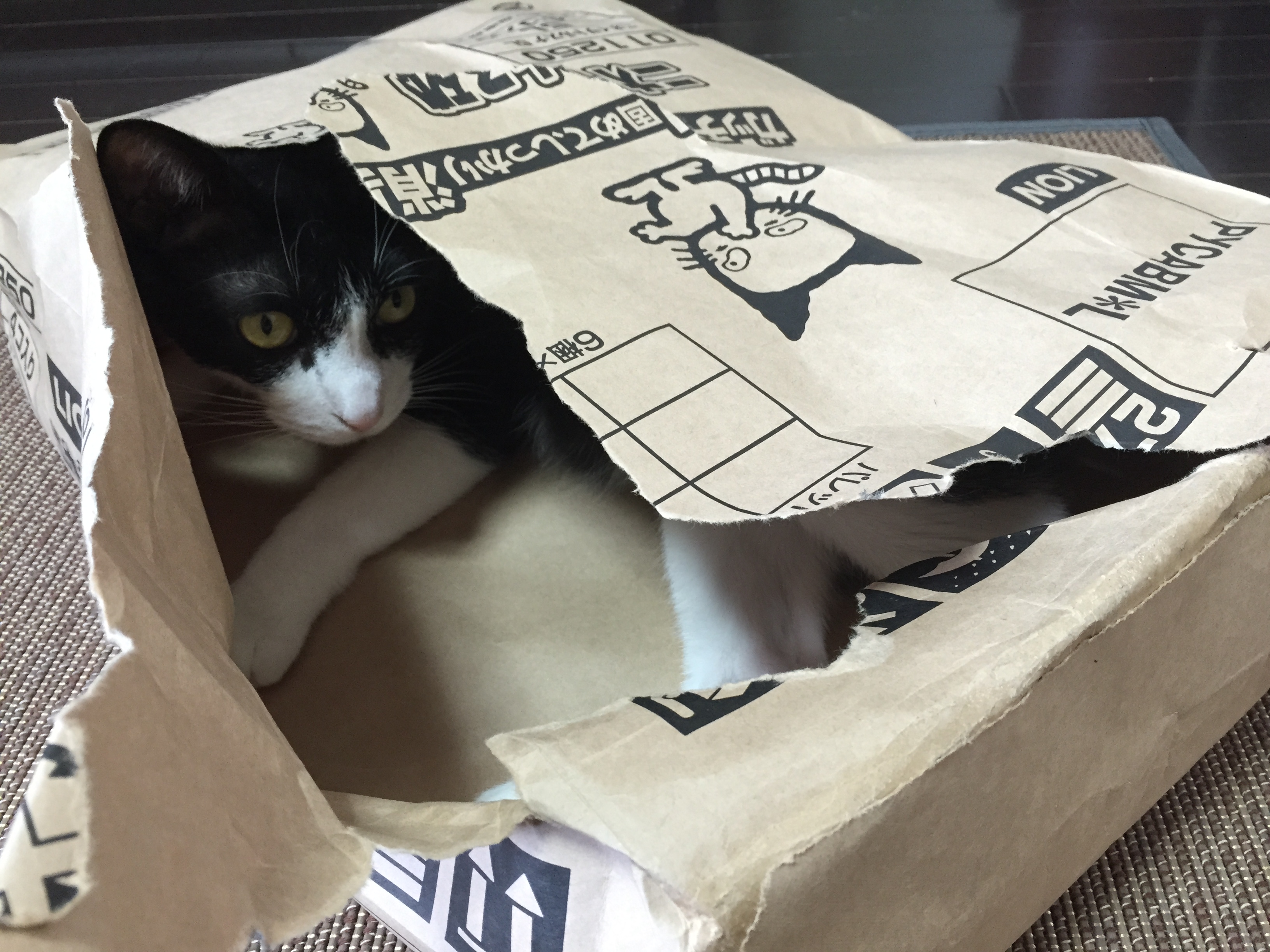 猫砂が入っていた袋なんですね! ちゃんとお掃除しているか こっそり確認しているのかな~?(●^o^●)