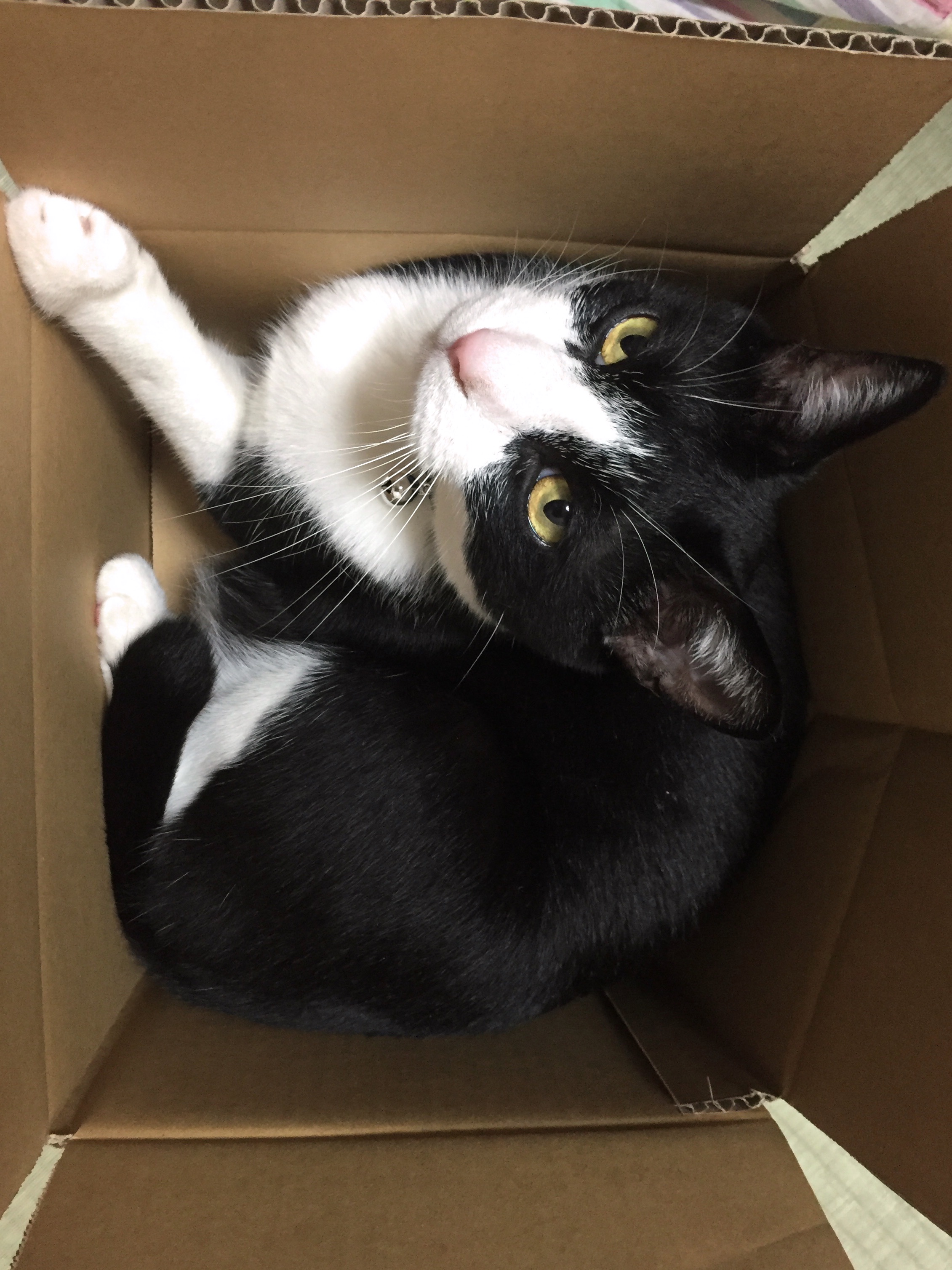 最初は収まりが悪いらしく箱の中でクルクル回っていましたがその内諦めてグイグイ広げてました(´Д` )