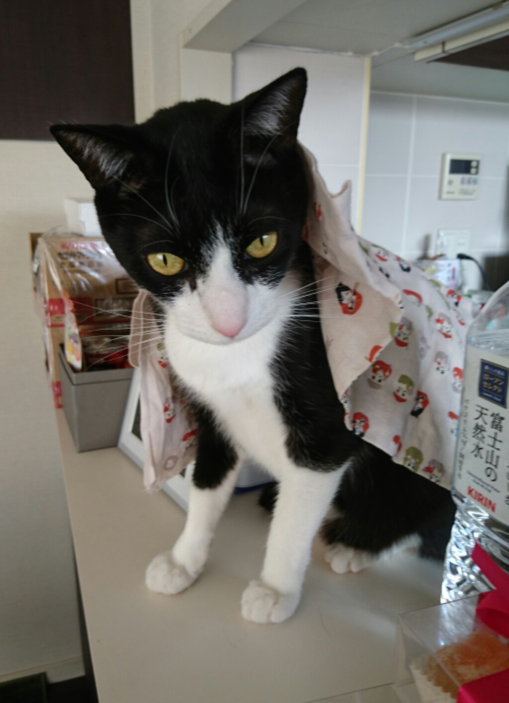時々悟ったのかのように仏の猫に変身します٩(๑´3`๑)۶手拭いはミソに影響されて買いました♪