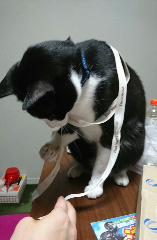 高級そうな紐・・・というかリボン♪ 大人しいのはプレゼントと化しているから?(笑)