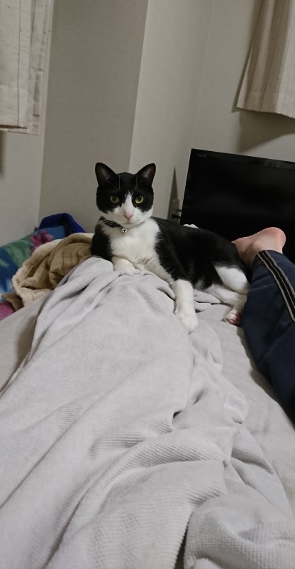 いいですよね♪奥さんとの間に来る時は脚だけ私の腕にくっつけたりとか(ノ´∀`*)
