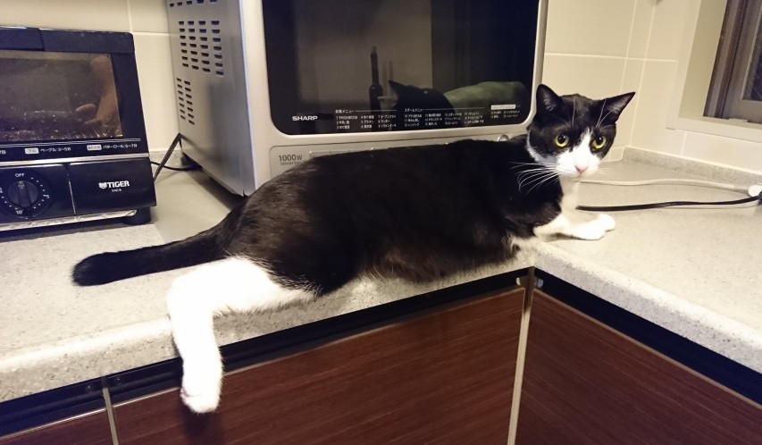 あとなので・・・ なおさらそこの場所が ひんやり気持ちいいのかもしれませんね。 広いキッチン羨ましいな~♪ みそちゃんだけでなくウチの子も一緒に乗れそう(笑)