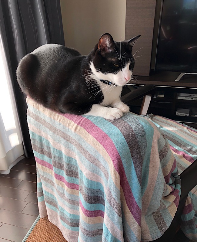 器用に暖かい場所を見つけますよね。しかも寝たふりして監視中です(΄◉◞౪◟◉`)