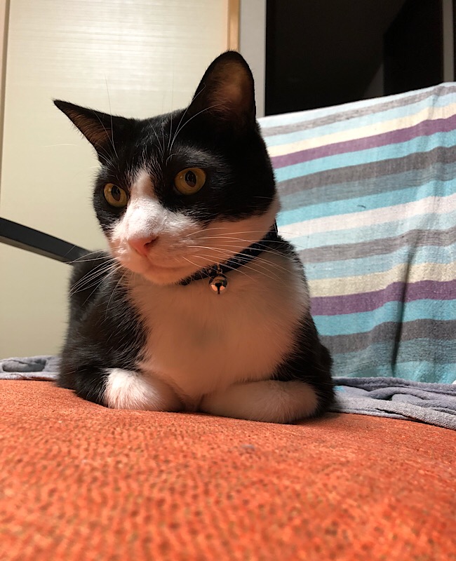 あのな、アンタもおじさん、ワシもおじさん。 じゃれ続けんのは疲れんねん。 おじさんはソファーで香箱座りやね。