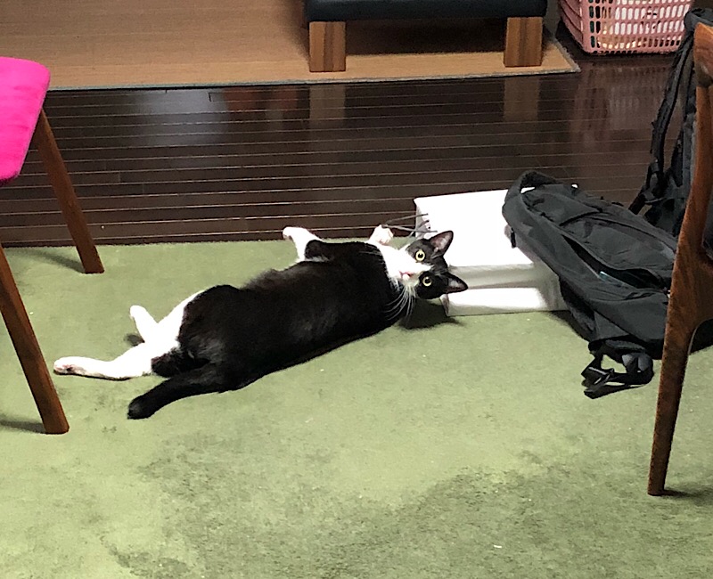 ええか、よー見とってや。 こうやって背中擦り付けるんやで。 さあ、真似してやってみて!!