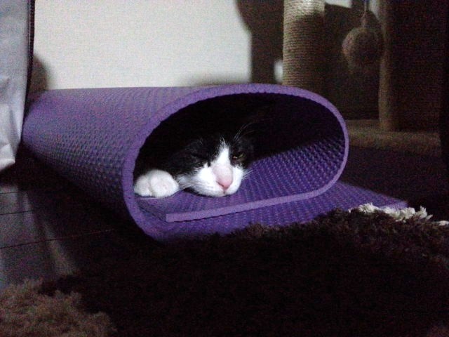 こんばんは。 猫って狭い場所すきですよね~っ!! 新聞の下とかに隠れて寝てるとたまに踏んじゃいそうになっちゃったりして困りますけど、やっぱり可愛くて怒れませんよね(笑)