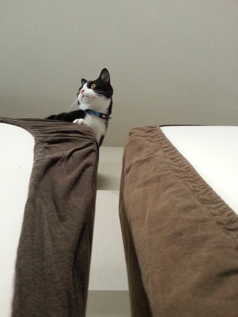 ウチは掃除機をかけているときは冷蔵庫の上に避難しています。