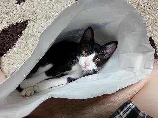 とりあえず袋を立てて周りをモシャモシャさすって遊んでみる。