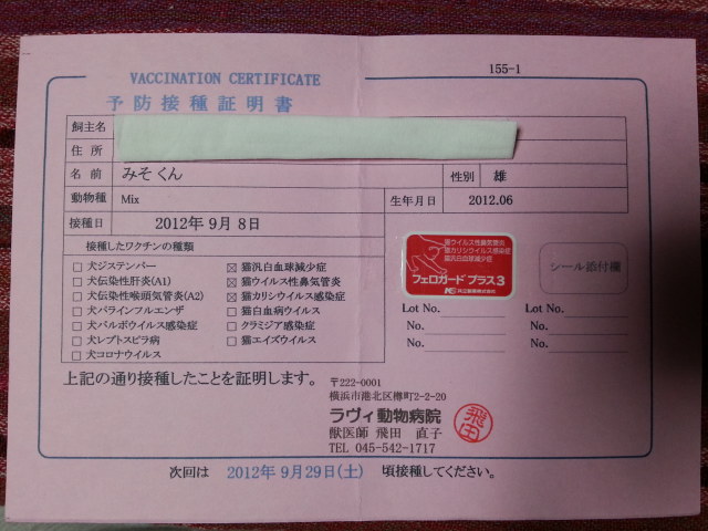 みそを譲ってもらった際にもワクチンの説明を受けた。